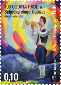 Motiv na poštanskoj marki predstavlja trubača u tradicionalnoj hercegovačkoj narodnoj nošnji u kojoj je nastupao Puhački orkestar i folklor HKUD „Seljačka sloga“. (Trpimir Grgić)